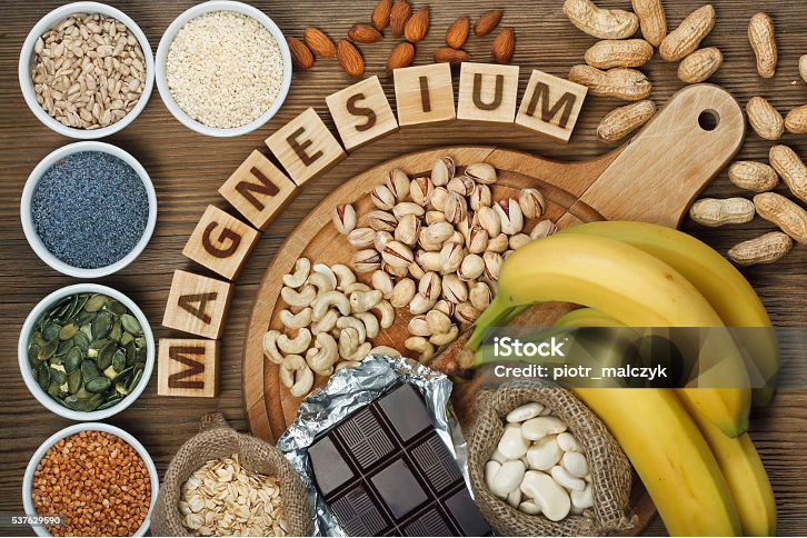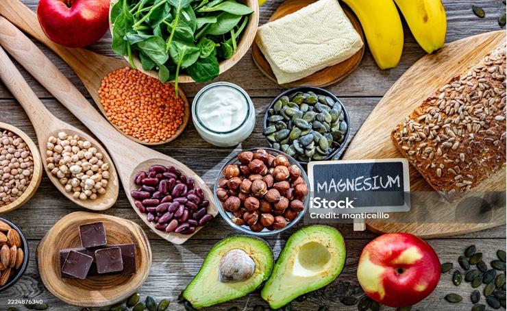 iStock. (2020). Foods containing natural magnesium (Mg): Chocolate, banana, cocoa, nuts, avocados, broccoli [Photograph]. https://www.istockphoto.com/photo/food-products-rich-in-magnesium-gm2222728037-638984459